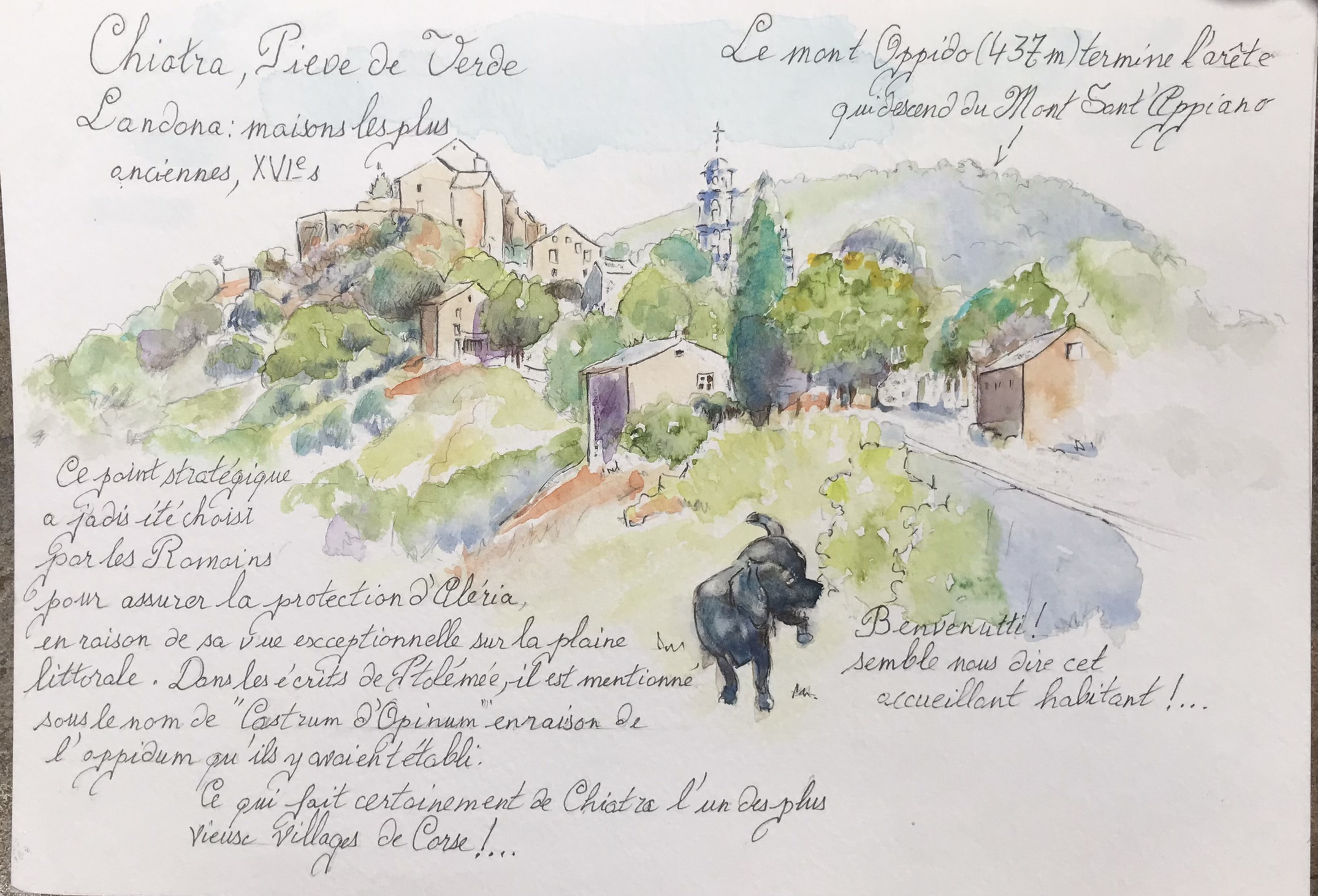 Chiatra di Verde, village de la Castagniccia, magnifiquement situé sur son éperon rocheux dominant mer et maquis. Stage de 2 jours pour découvrir ou redécouvrir l’aquarelle et le croquis.