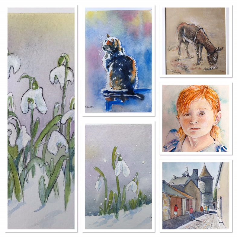 -Etude de différentes techniques : Croquis, Aquarelle, Encre,
